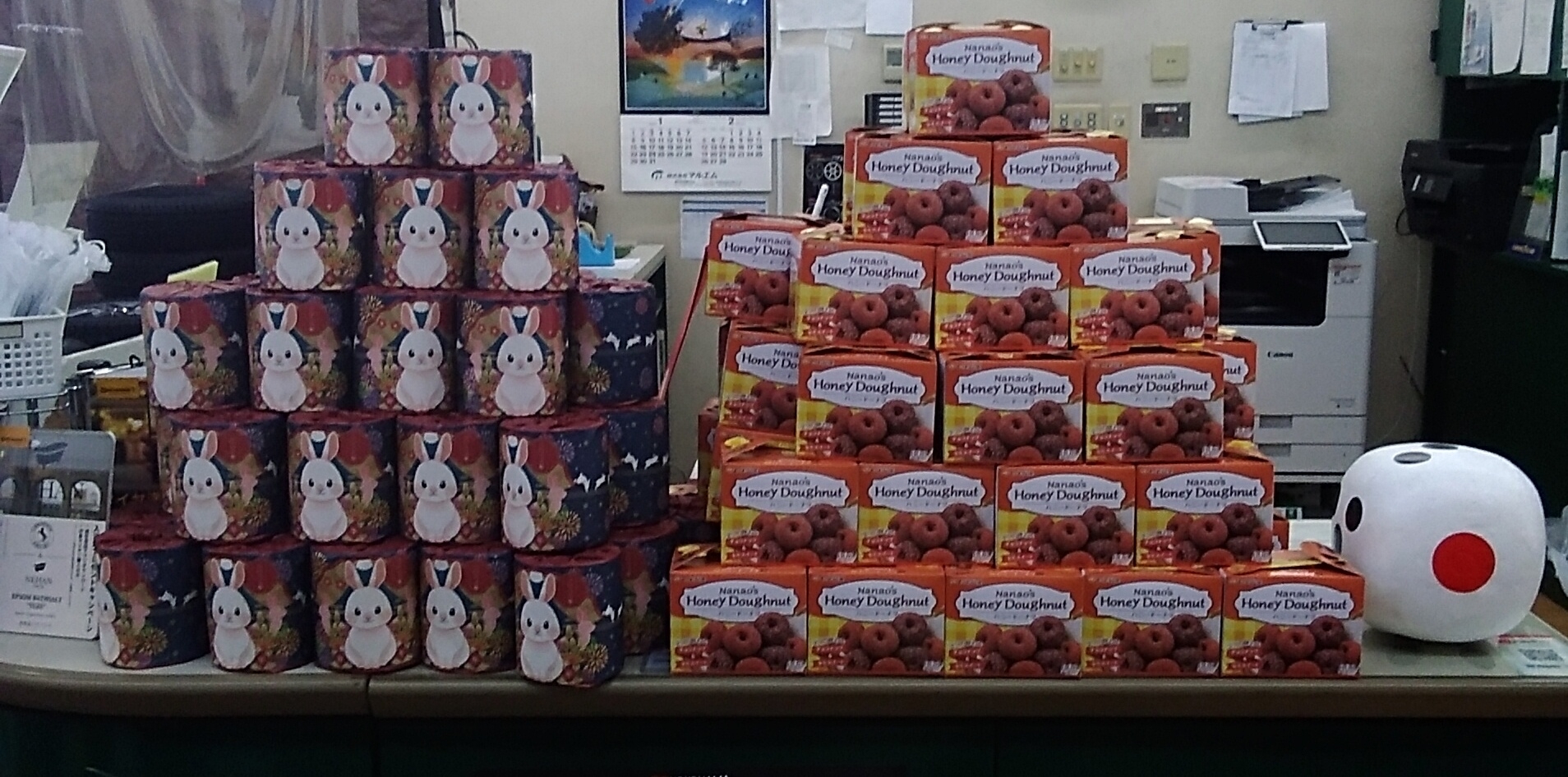 サイコロ転がして出た目の数だけミニドーナツor干支トイレットペーパープレゼント!