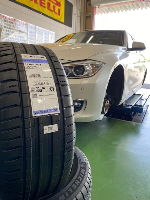 BMW3シリーズのタイヤ4本交換!ミシュランのパイロットスポーツ5!225/45R18!18インチ!輸入車は宇都宮南店にお任せ♪
