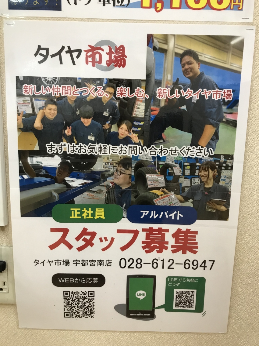 タイヤ市場で一緒に働きませんか!! 宇都宮南店スタッフ大募集中!!