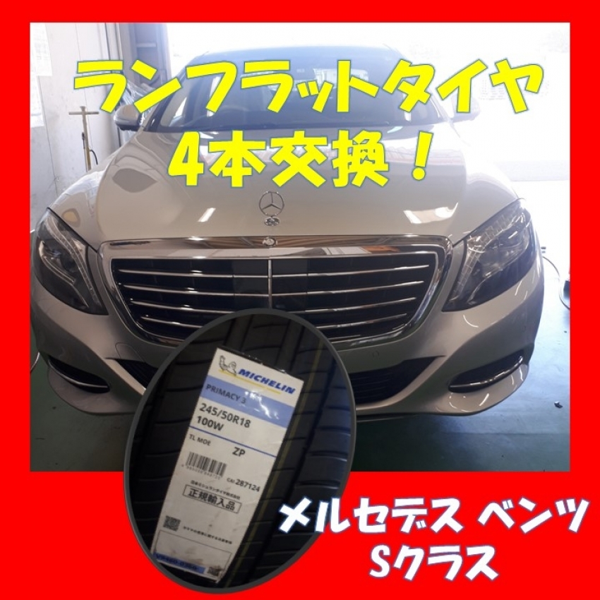 メルセデス ベンツSクラス!ランフラットタイヤ ミシュラン プライマシー3MOE ZP 245/50R18装着!!!!