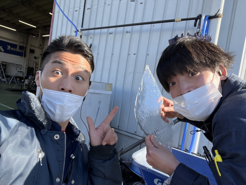 南店では朝、氷が張っていました!! ((( ^ω^ )))