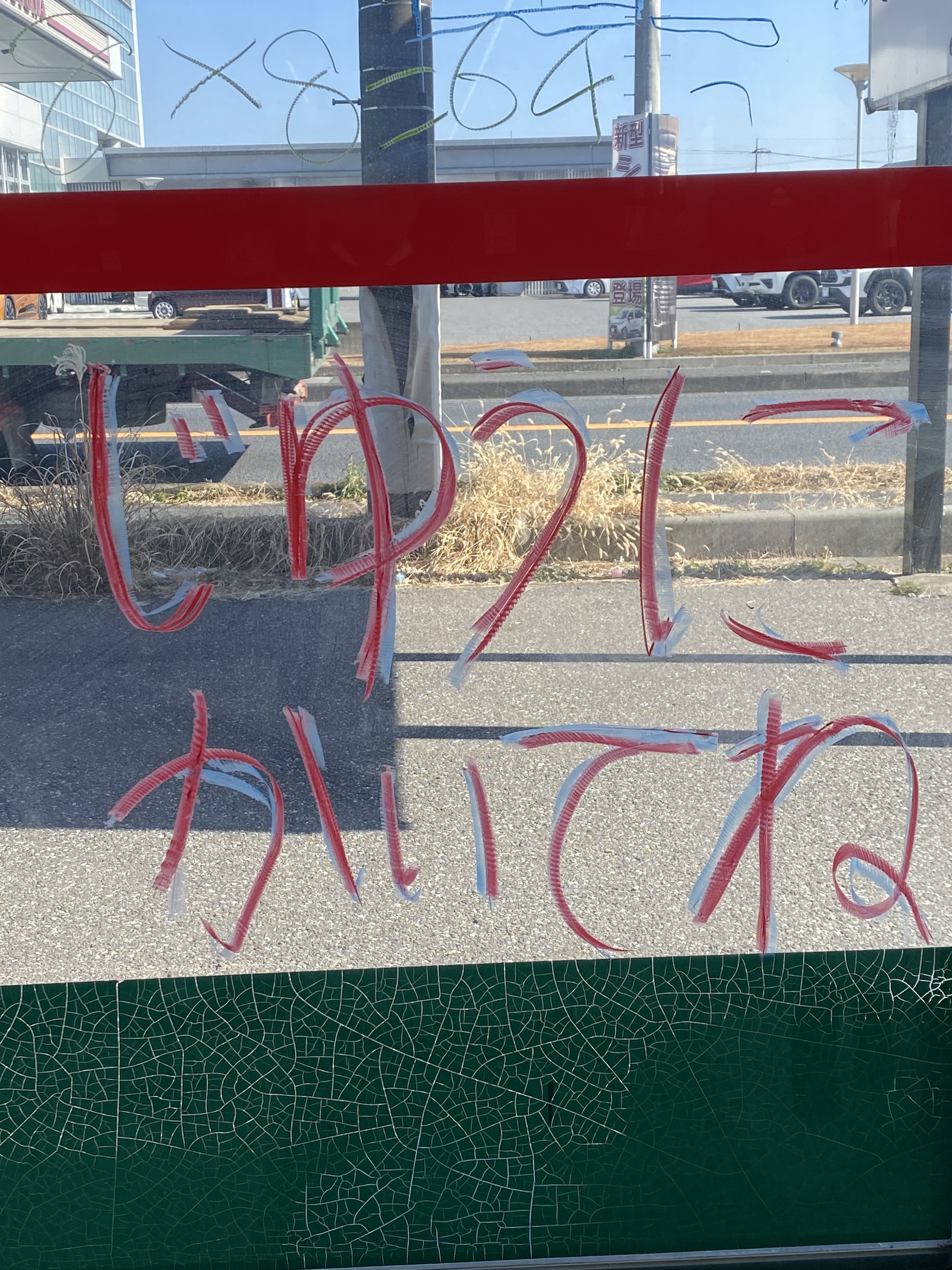 キッズコーナーのガラスのところには壁に描けるクレヨンでなんでも描いちゃってOKです!