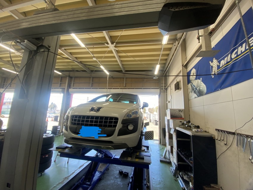本日はプジョーの3008がご来店されました!作業としてはタイヤ交換とアライメントの調整をさせていただきました!