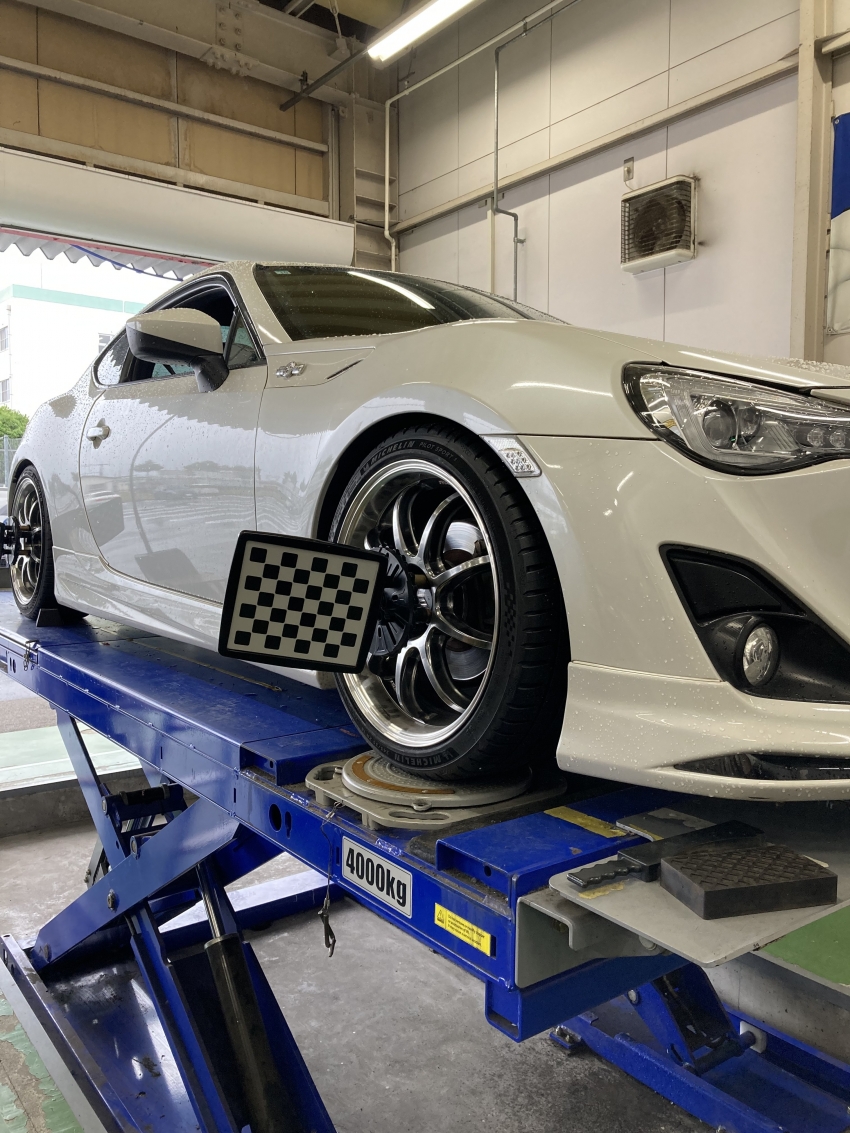 本日はトヨタの86のお客様がタイヤ交換とアライメント調整でご来店されました