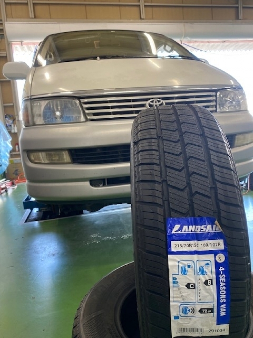 ハイエースにオールシーズンタイヤを装着!215/70R16!16インチ!