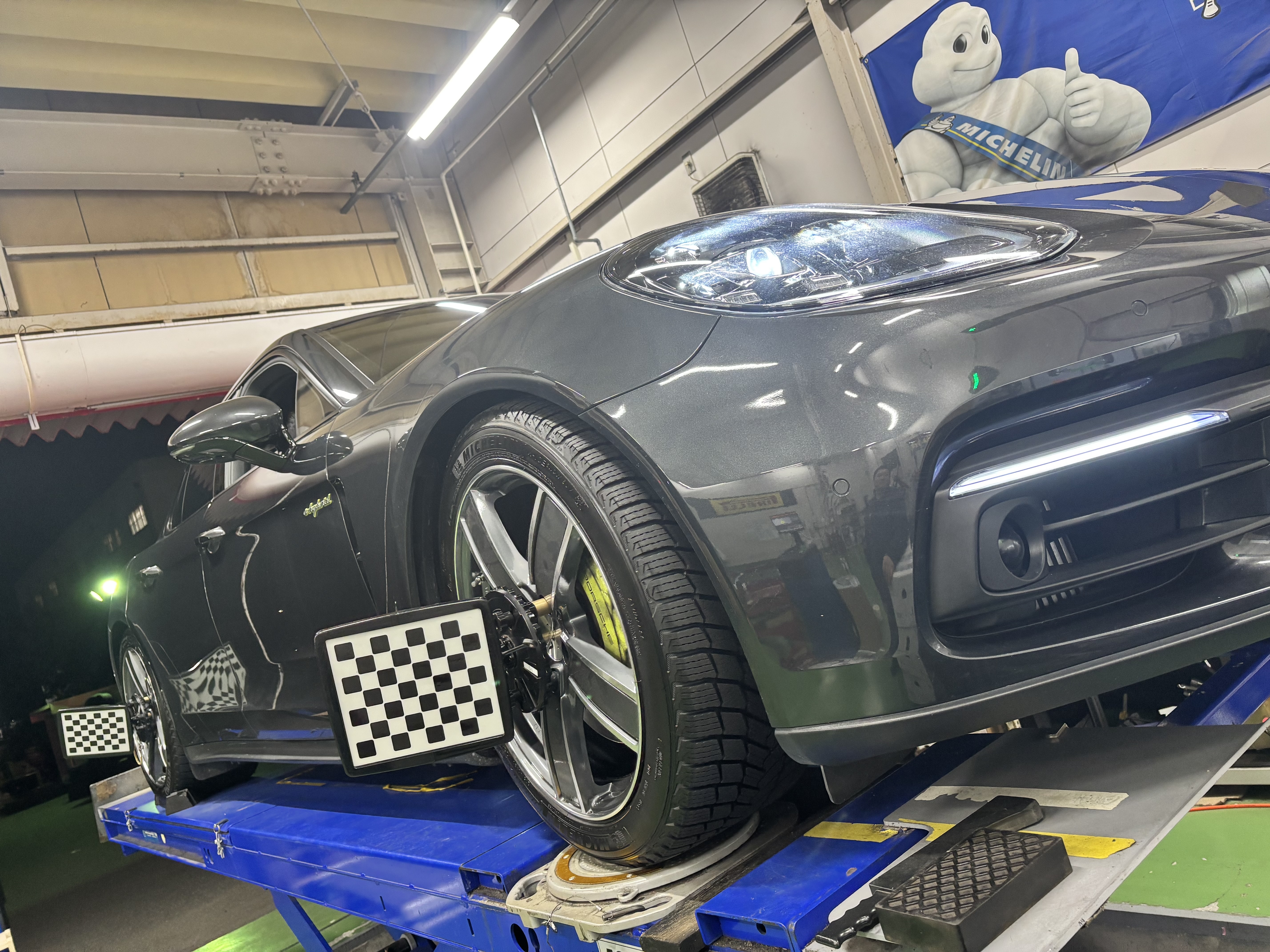 ポルシェ パナメーラ スタッドレス取り付け&アライメント調整!!