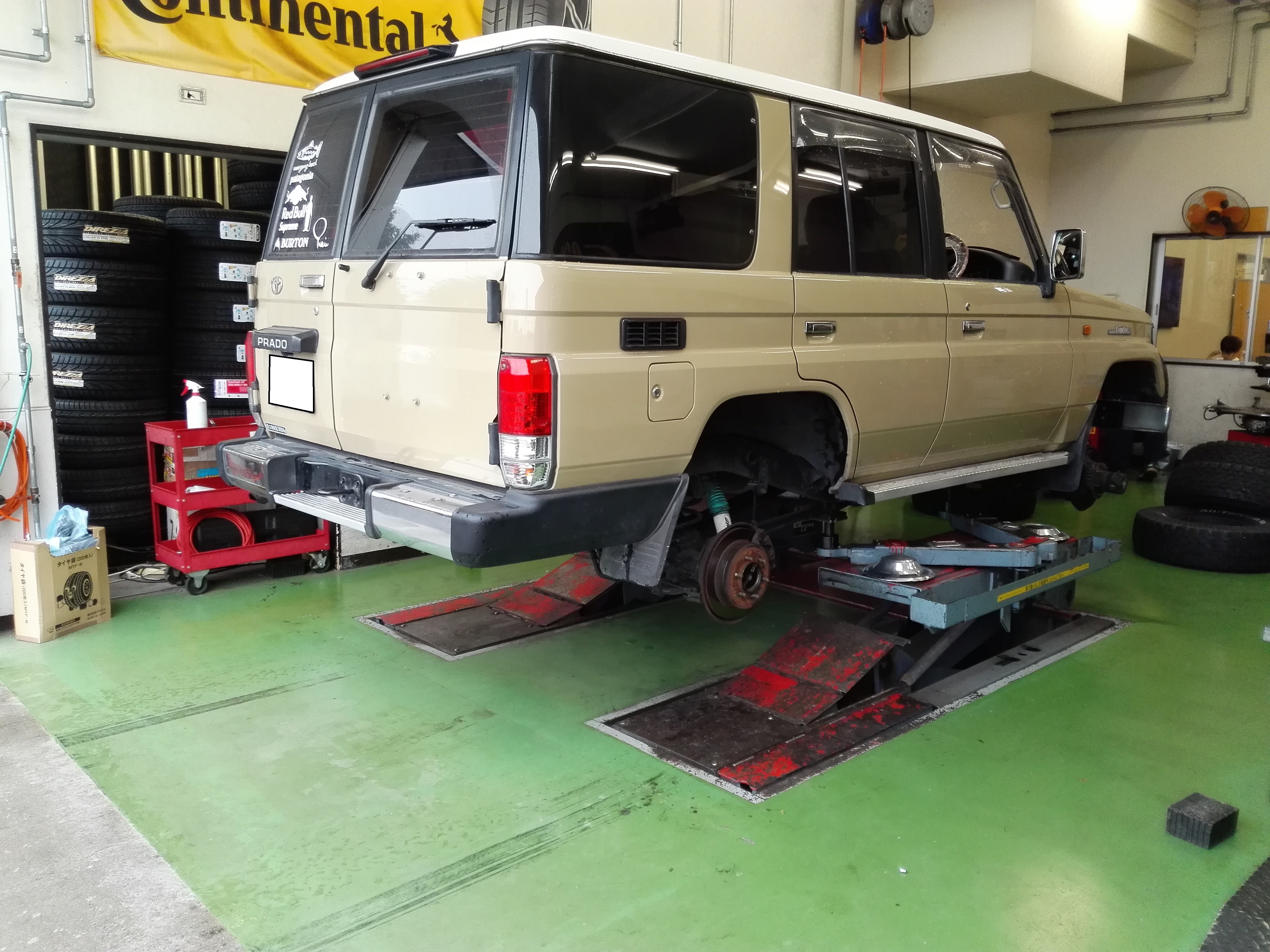 本日はランドクルーザープラドでタイヤ4本交換を行いました!![]()