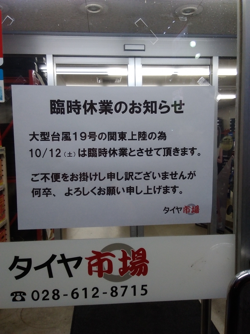 10月12日(土)は大型台風上陸の為 臨時休業とさせて頂きます。