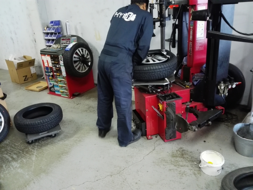 本日もKさんはお客様のタイヤを丁寧に~組み込み作業中!!