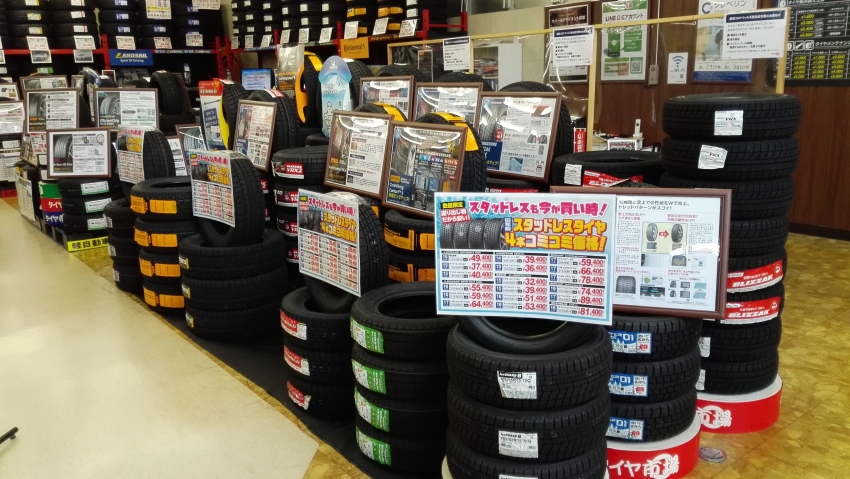 時期早めですが、店内にスタッドレスタイヤを並べはじめました!(*'ω'*)