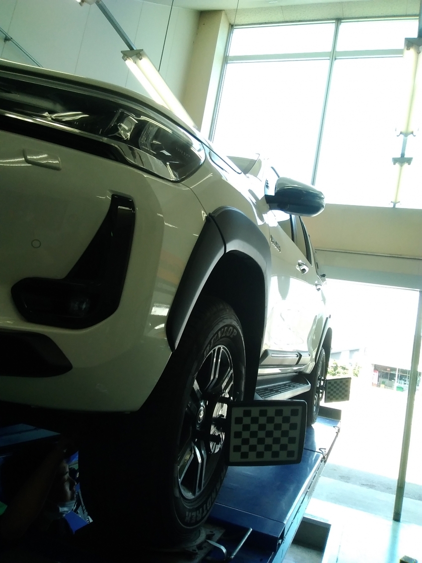 本日はハイラックスのアライメント調整をさせていただきました!!