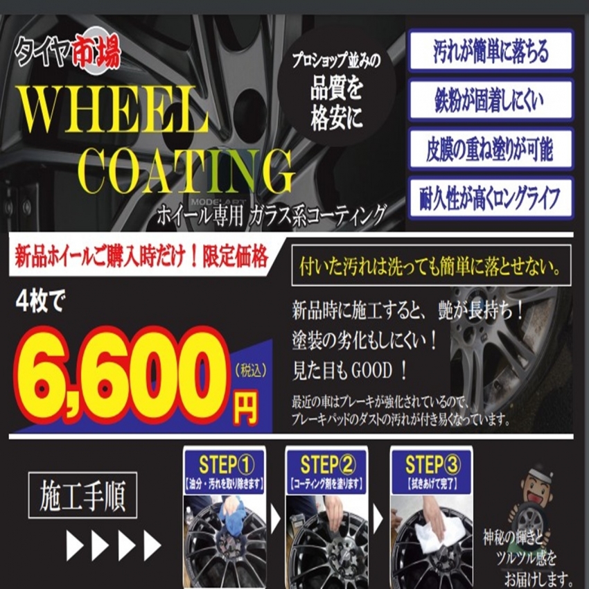 ホイールコーティング4枚1台分 プレゼントのチャンスです