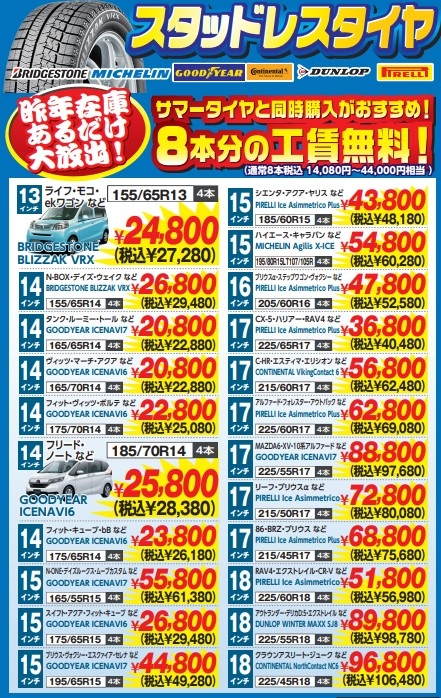 スタッドレスタイヤはスーパーアウトレットセールでおトクにゲット