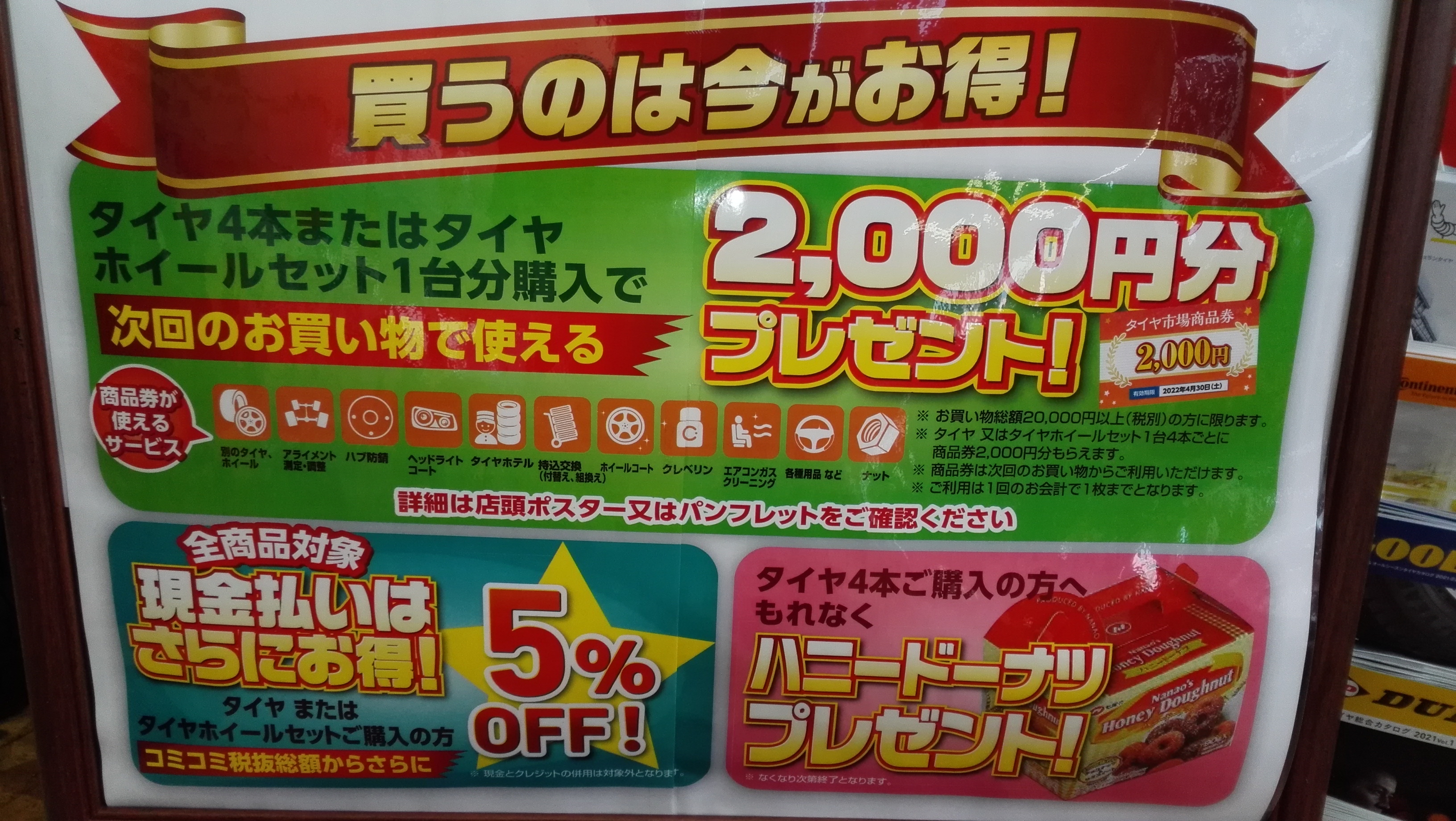 更に更に、タイヤ市場のお買い物券2,000円券!