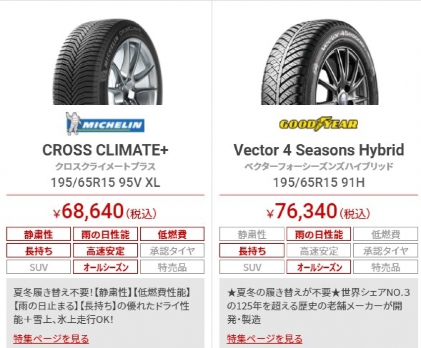 タイヤ市場西川田店のオールシーズンタイヤ人気ランキングは