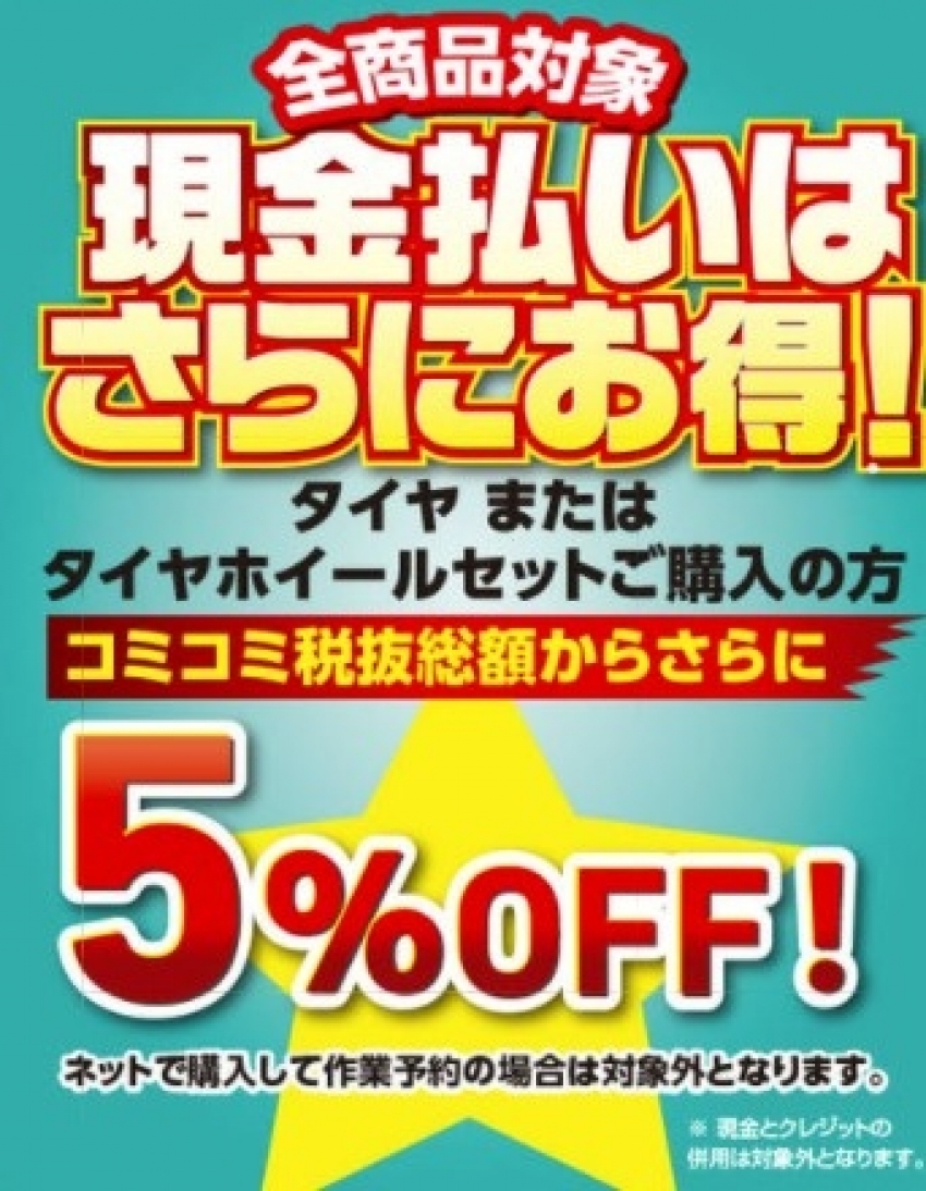 タイヤ市場ではタイヤ4本購入でお支払いが現金なら