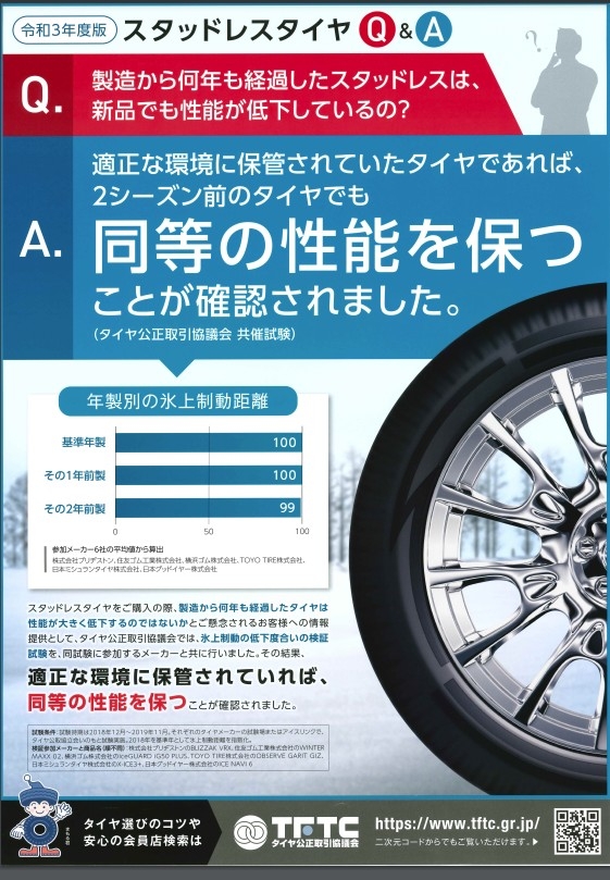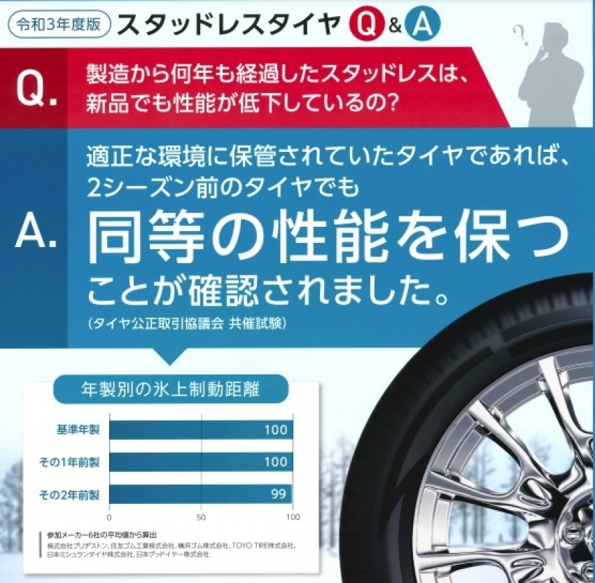 スタッドレスタイヤ、新品ですが製造年数が経過している...