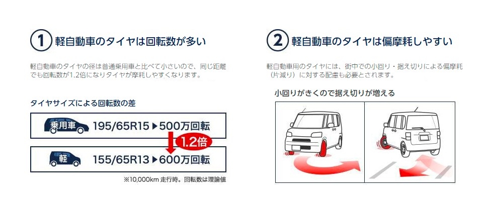 実は軽自動車ってタイヤが偏摩耗しやすいんです