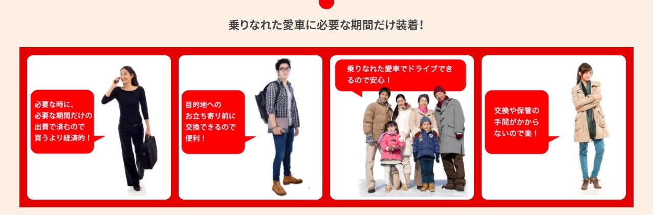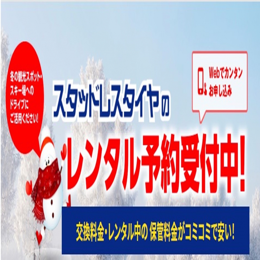 - レンタルタイヤ、ホイールは当店指定品となります。タイヤサイズによりブランドが異なります。詳しくは店舗へお問い合わせください。