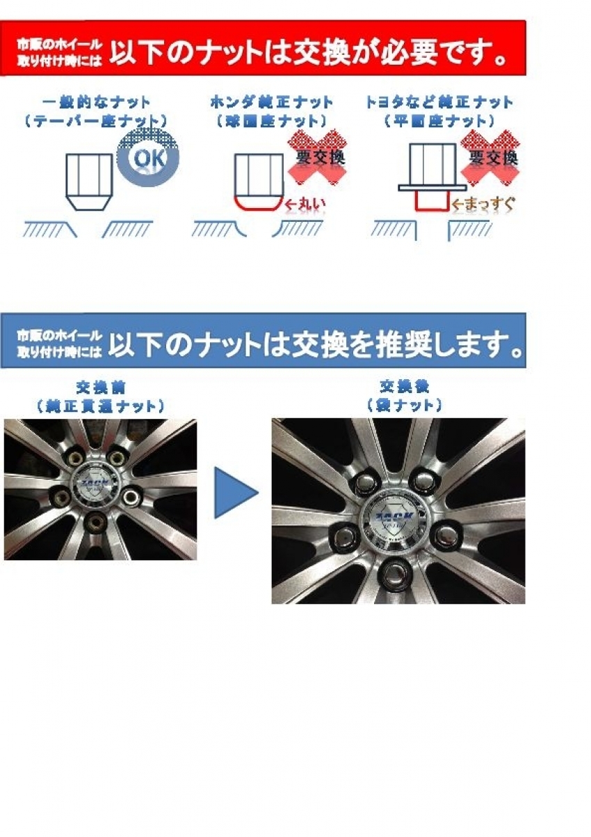 トヨタ車、ホンダ車、元々装着されている純正ナットが、