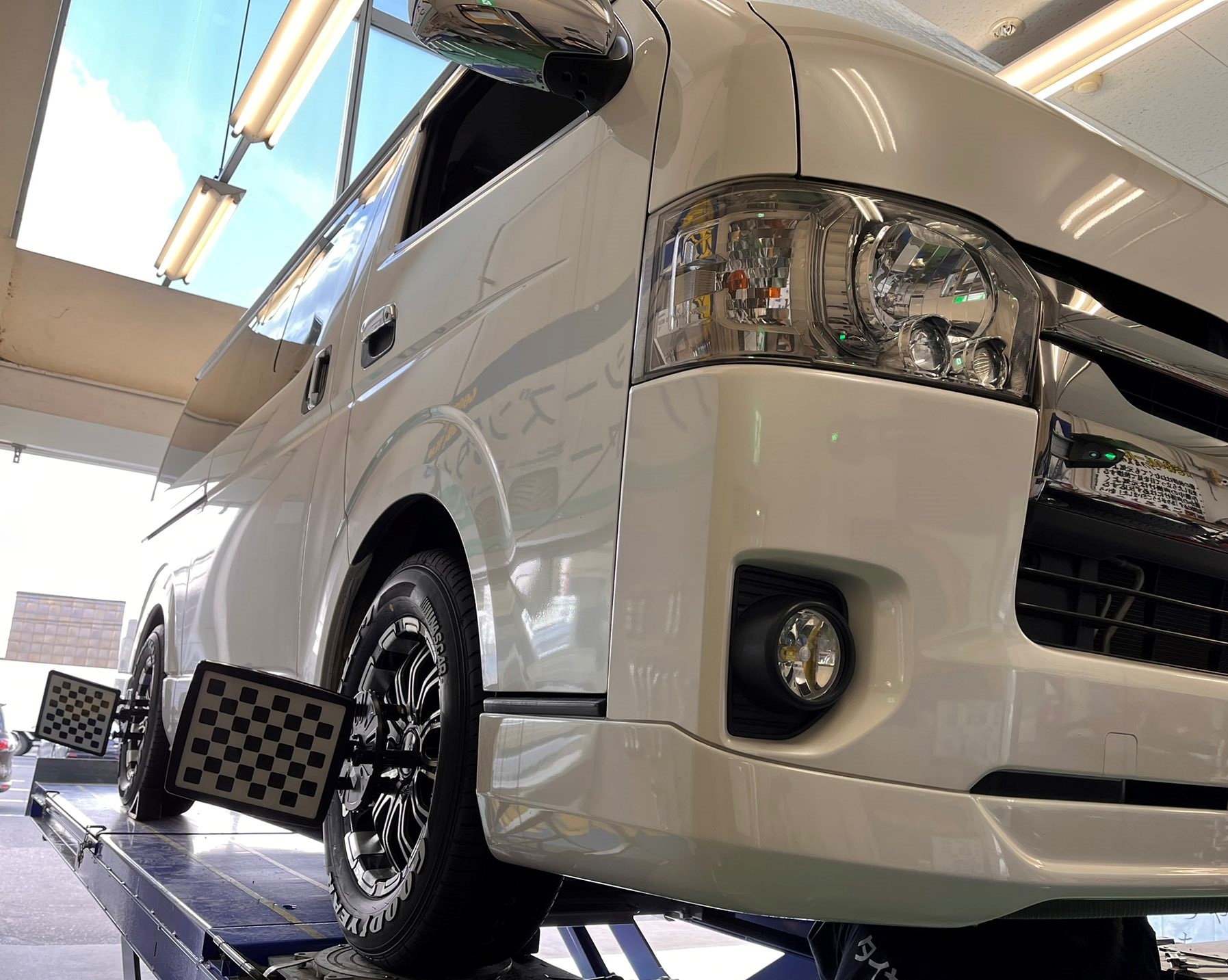 本日、ハイエースの4本交換とアライメント調整を致しました(^^)/