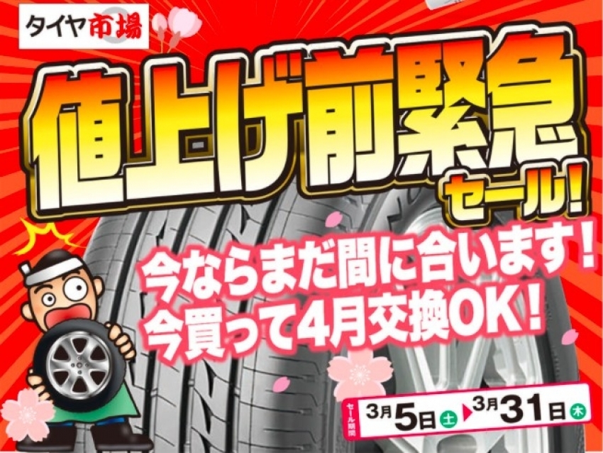 もうすぐ4月!いよいよタイヤの値段が上がります