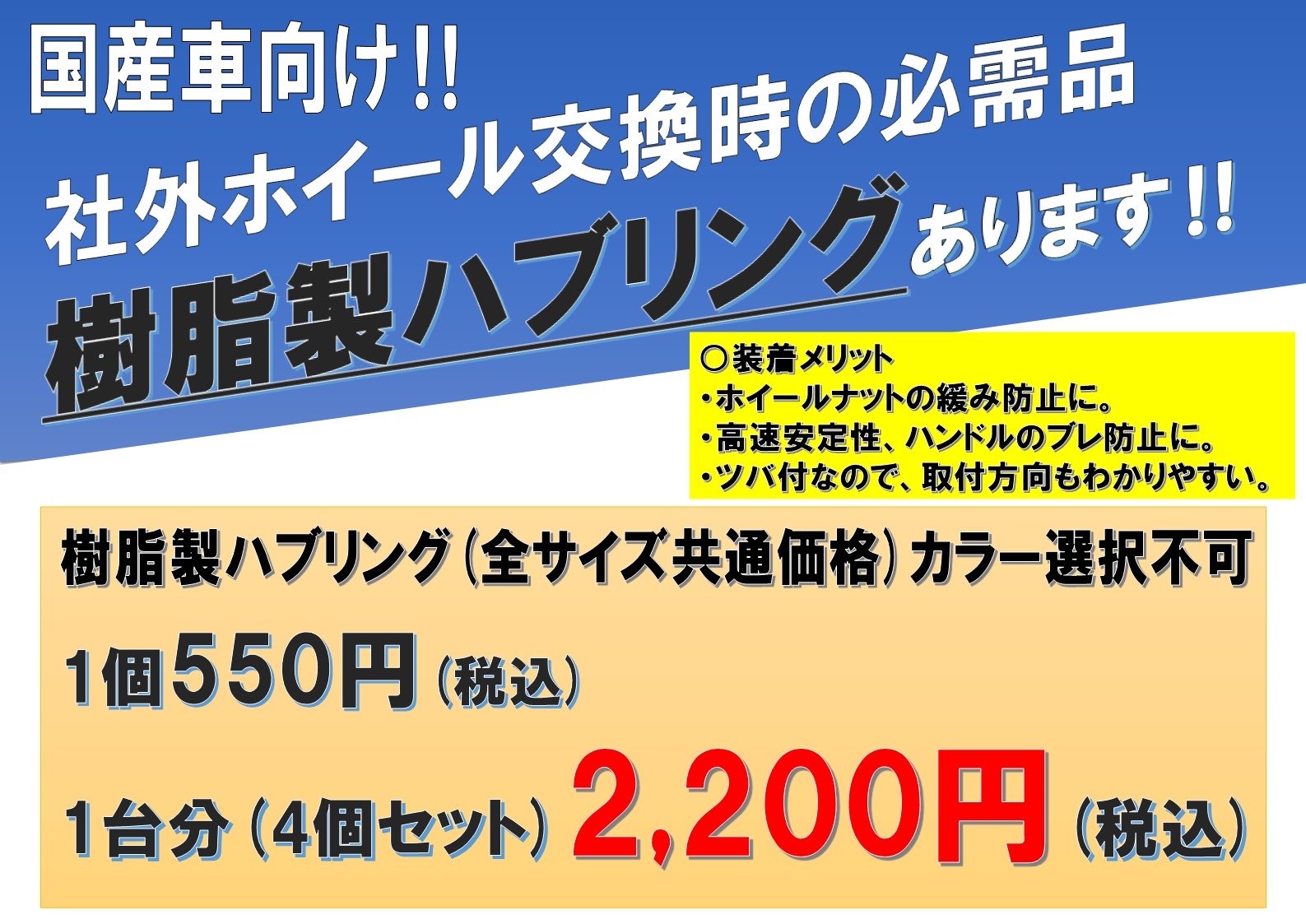 ハブリングを各種サイズご用意させていただきました!