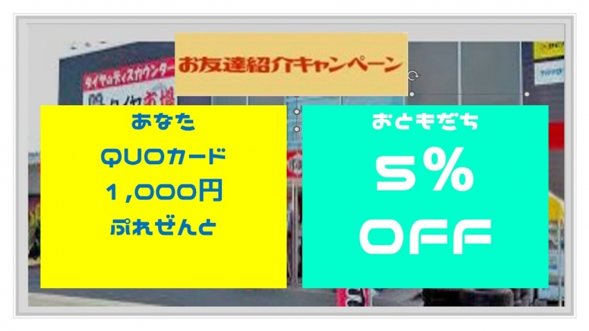 紹介されたお友達はタイヤご購入の際、5%OFF!!!!
