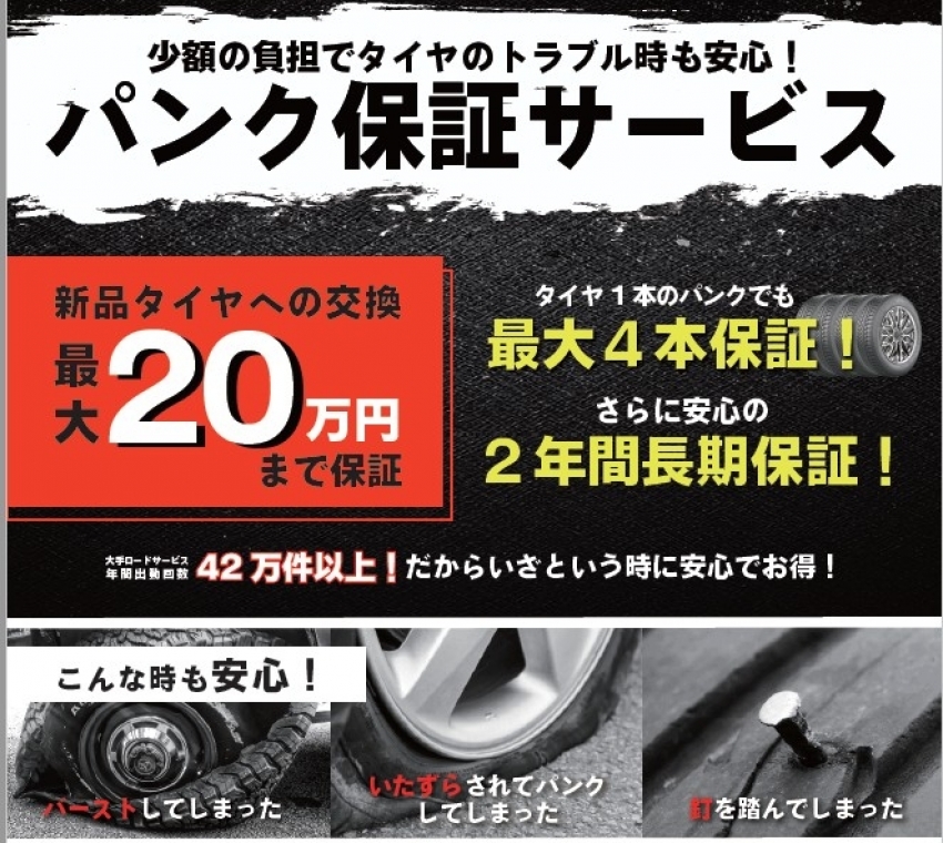 タイヤ4本購入した時はご一緒にパンク保証のご加入も!!