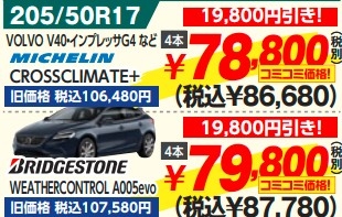 ボルボV40 インプレッサなど オールシーズンタイヤはいかが?