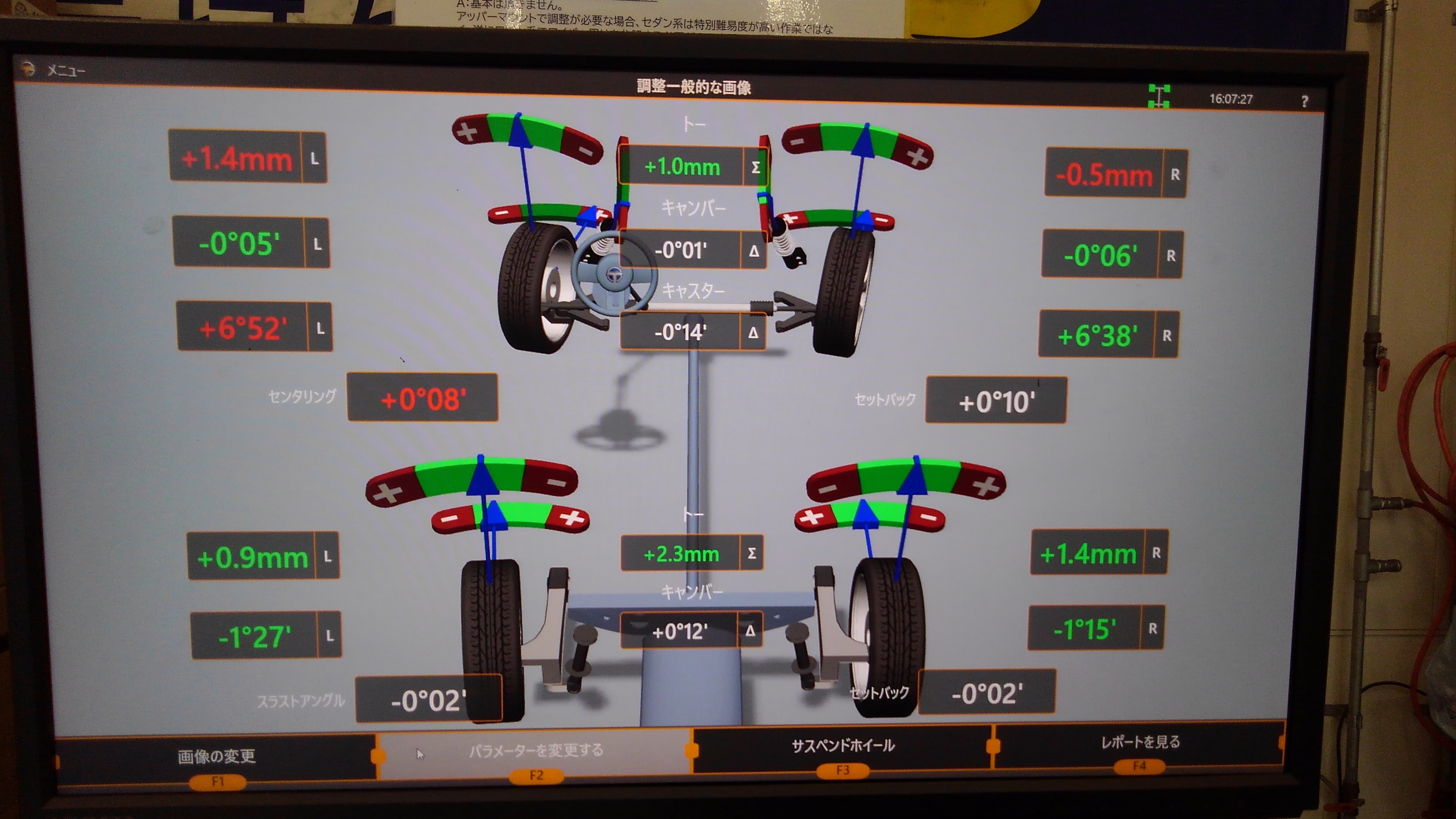 左フロントが基準値よりトゥイン(内側に入っている)になっていた為、偏摩耗が起きやすくなっていたと思われます!