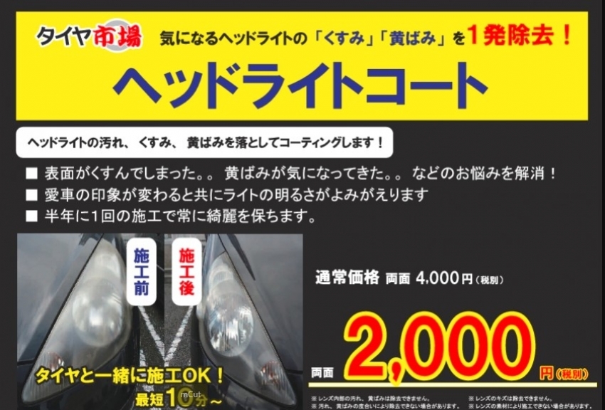 今回ご紹介させて頂くのは、ヘッドライトコーティング