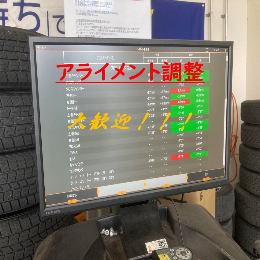 そんな時は、是非タイヤ市場までお越しください!このように、お車の骨格矯正のような作業をアライメント調整というのですが、
