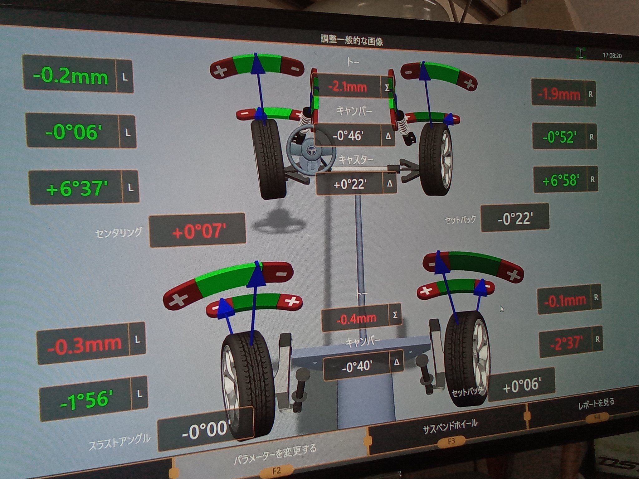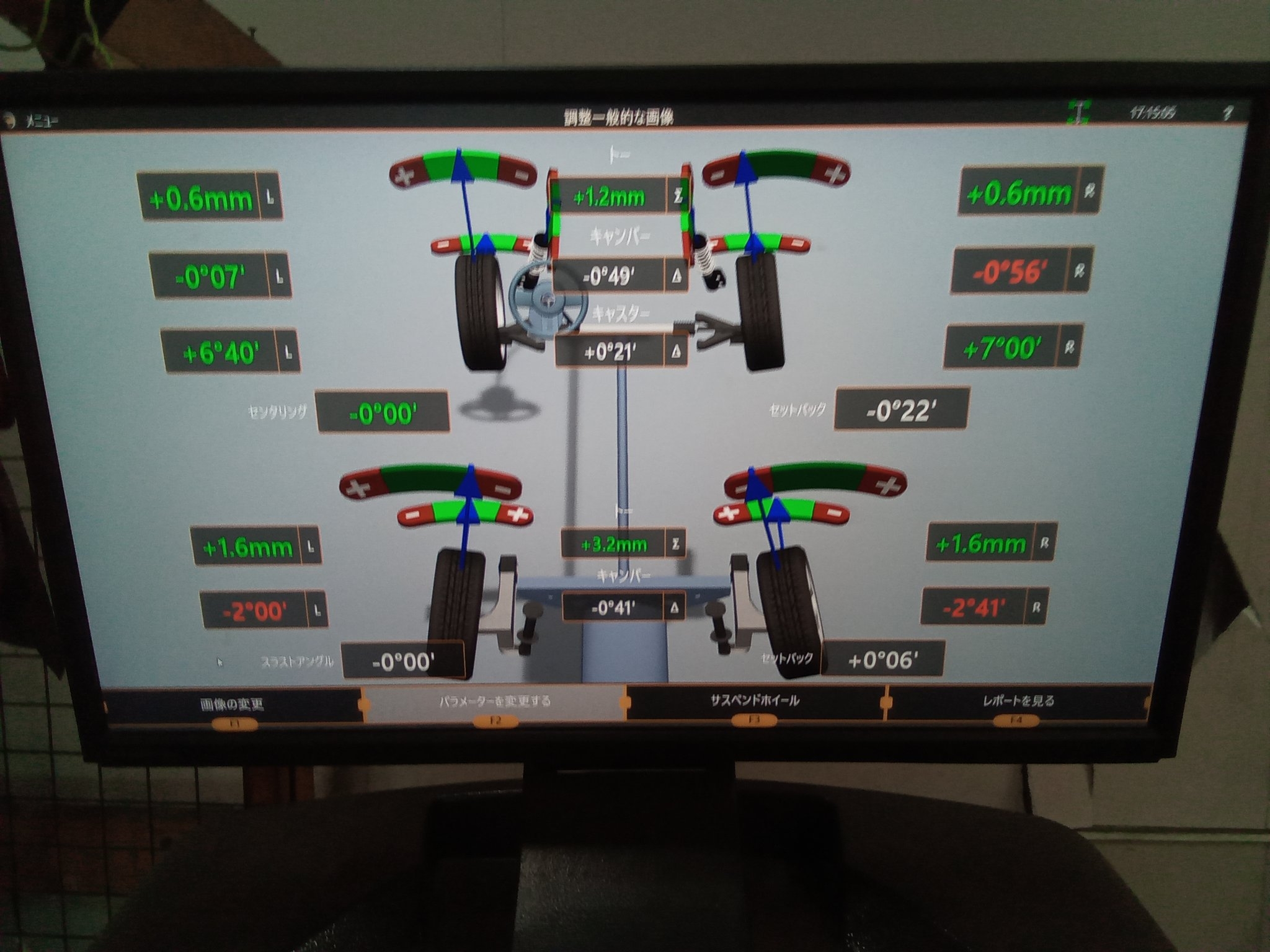 タイヤの偏摩耗が進んでいたので、アライメント調整を行いました( *´艸`)