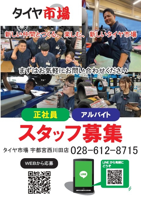 タイヤ市場宇都宮西川田店では、一緒に働いてくれる仲間を募集しています!