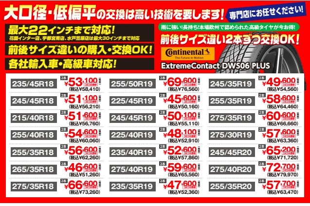 大きいタイヤ 前後サイズ違い・2本ずつでもOK