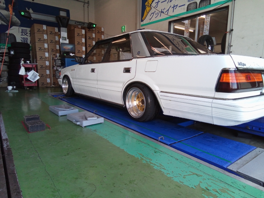 ノーサスで車高が結構下がっている為アライメントを行いました