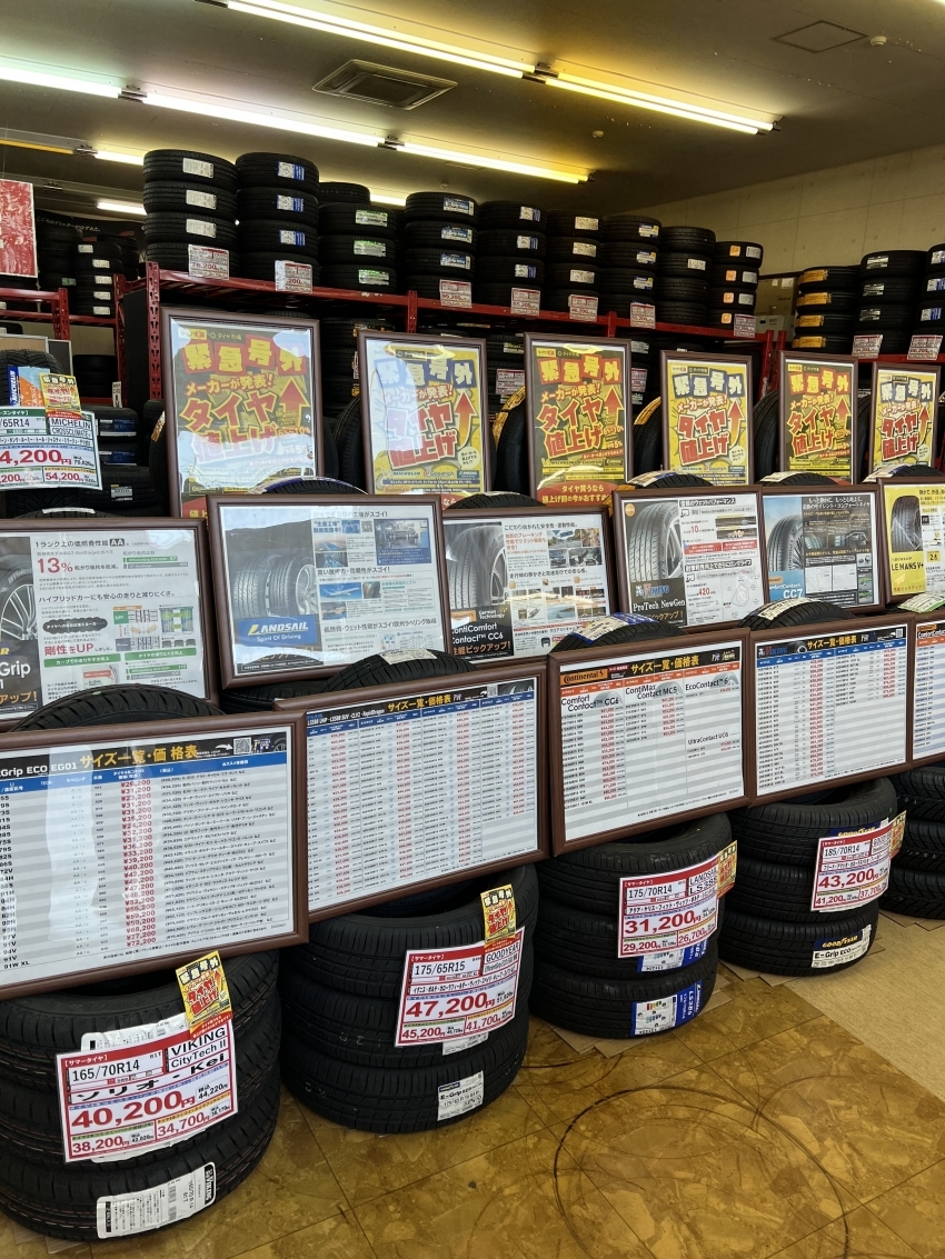 当店の売り場も春に向けて、夏用タイヤのみ展示してあります!