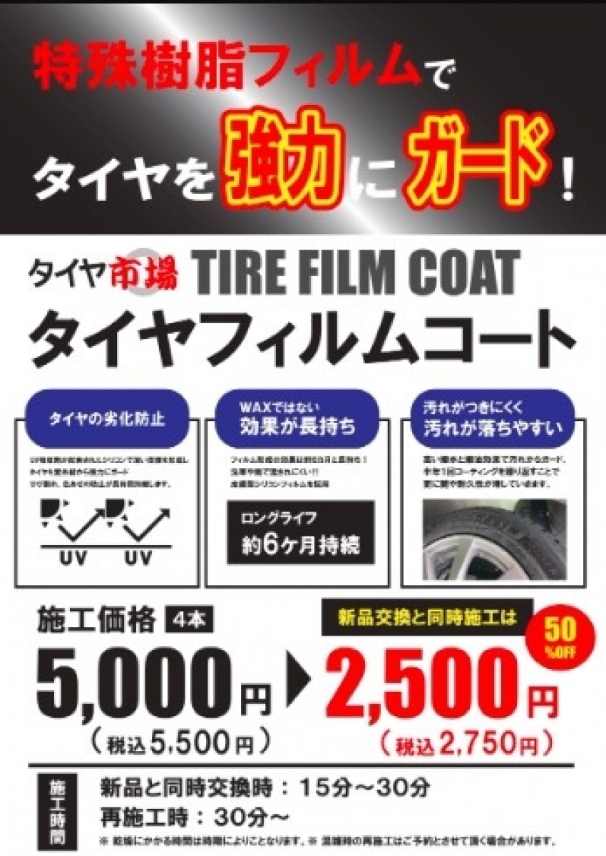 只今、タイヤ市場西川田店ではタイヤの劣化防止しませんか?