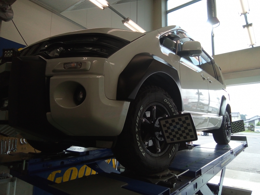 測定したところ、フロントはトータル-5mmとかなりトーアウトとなっておりました