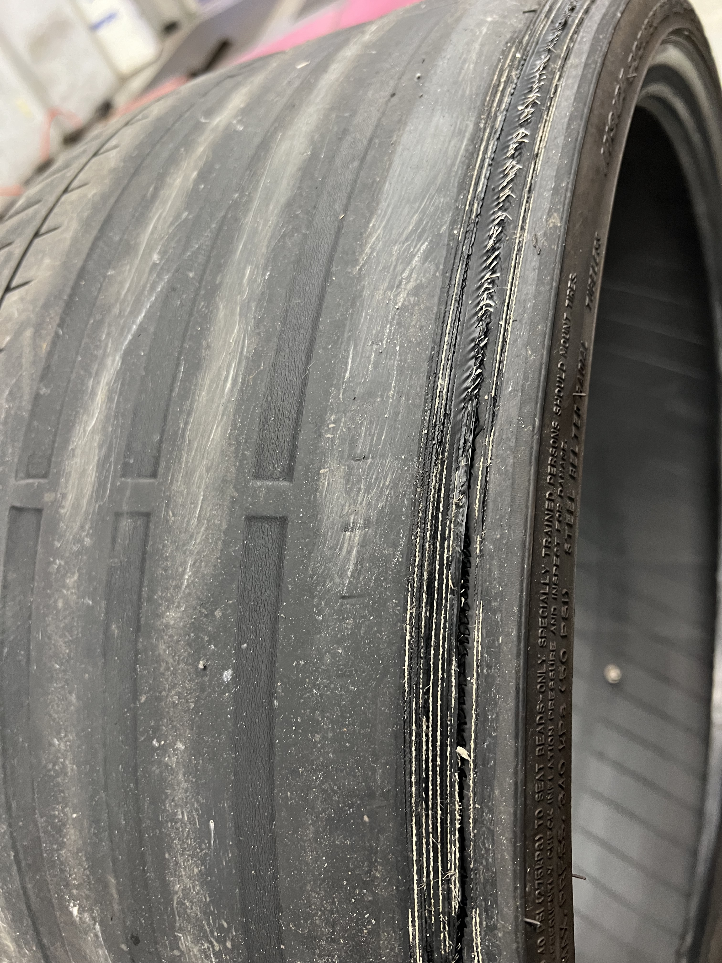 ベンツSクラスのリヤタイヤですが、この大きさは交換できる設備も限られてしまうので店によっては断られてしまう場合もあると思います