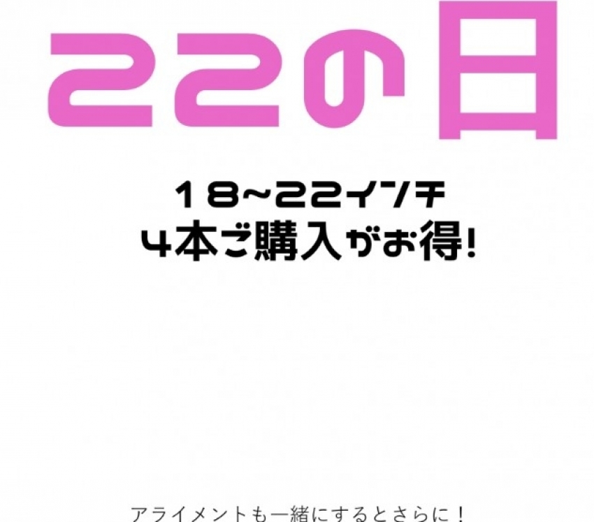 22の日! 18インチ~22インチ4本購入&アライメントが安い!大口径はタイヤ市場宇都宮西川田店へ