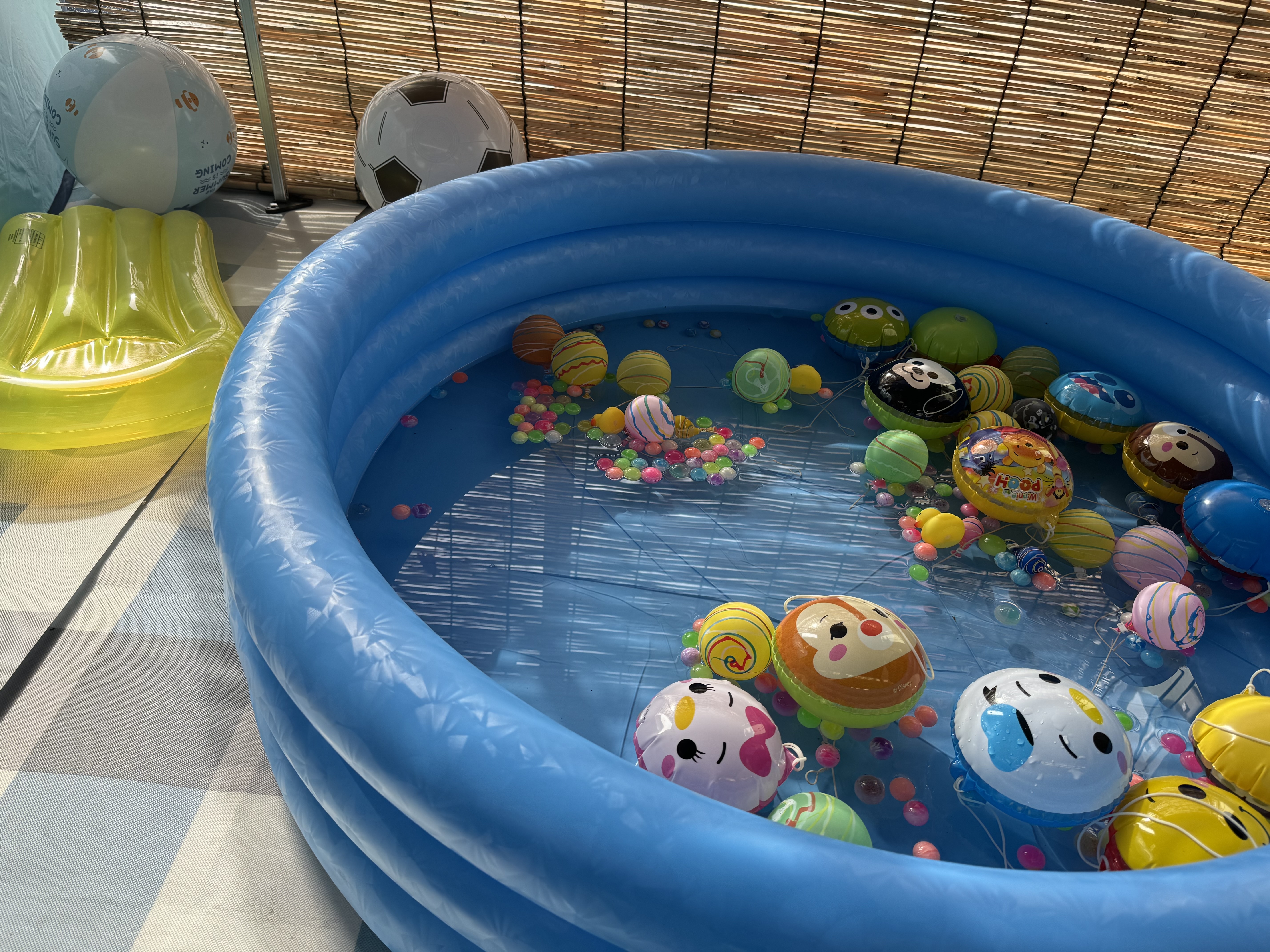 お子様向けにスーパーボール、水風船、駄菓子をご用意させていただきお祭り気分を味わってもらいたい!
