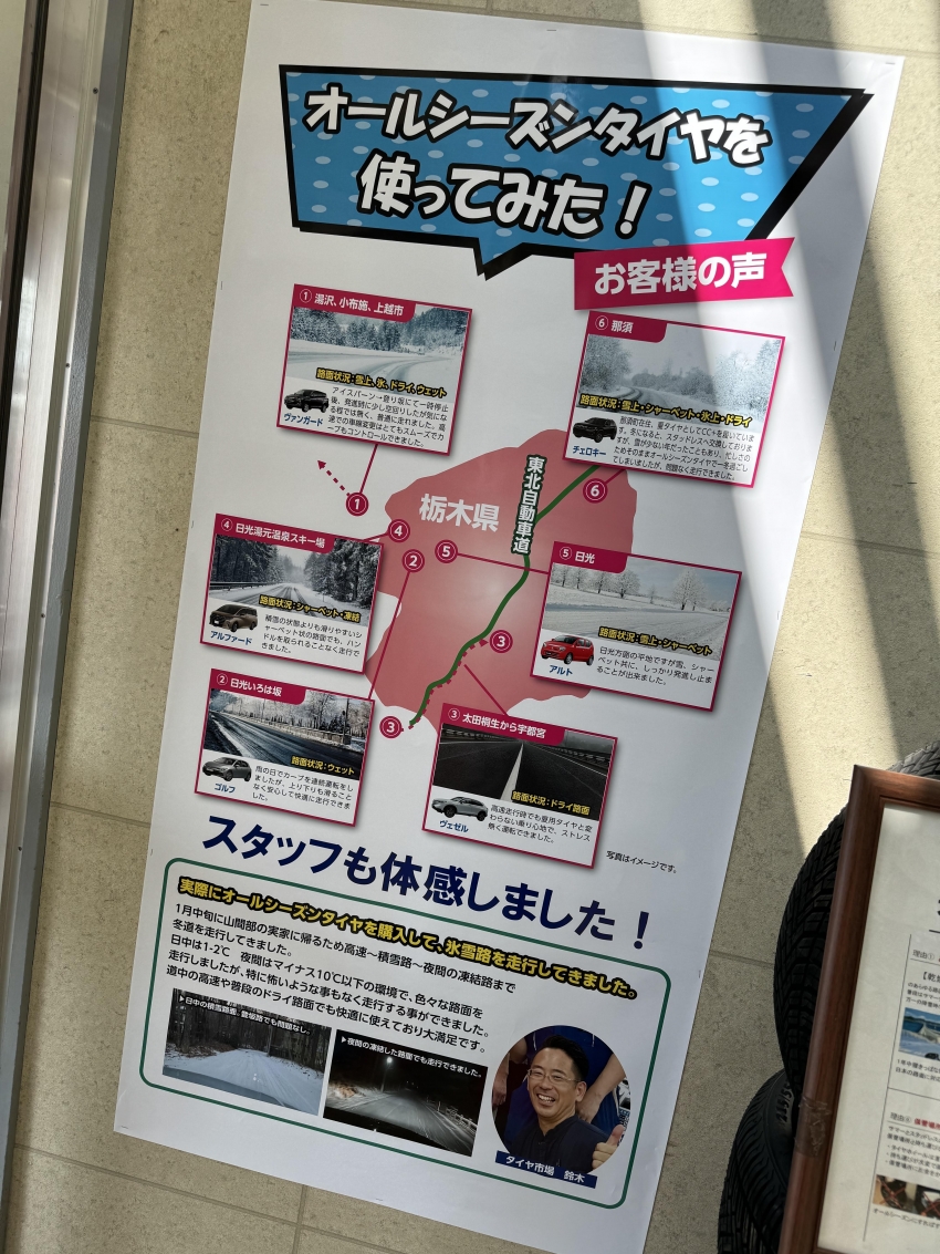 栃木県内では、那須や日光などで走行されて問題なく走行できたというお客様の声を頂いております!
