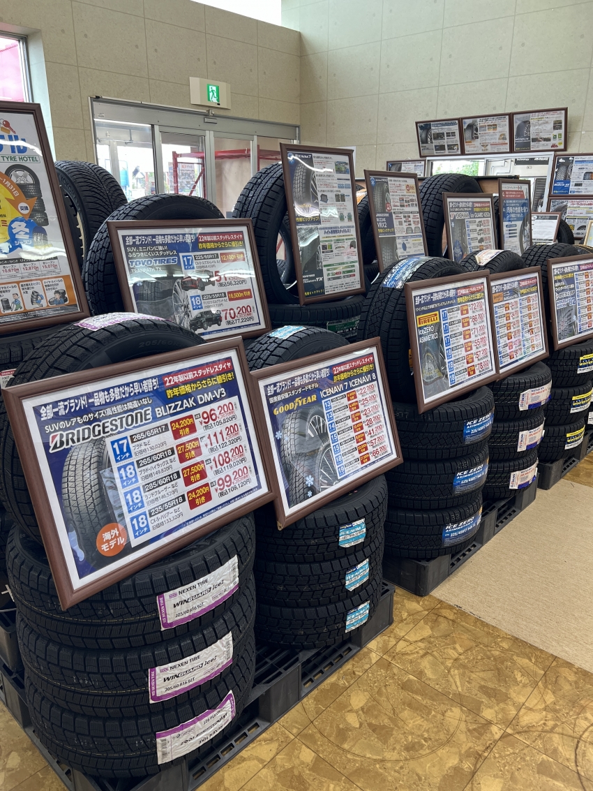 当店では既にスタッドレスタイヤを店頭に並べております、ぜひ見に来て下さい!