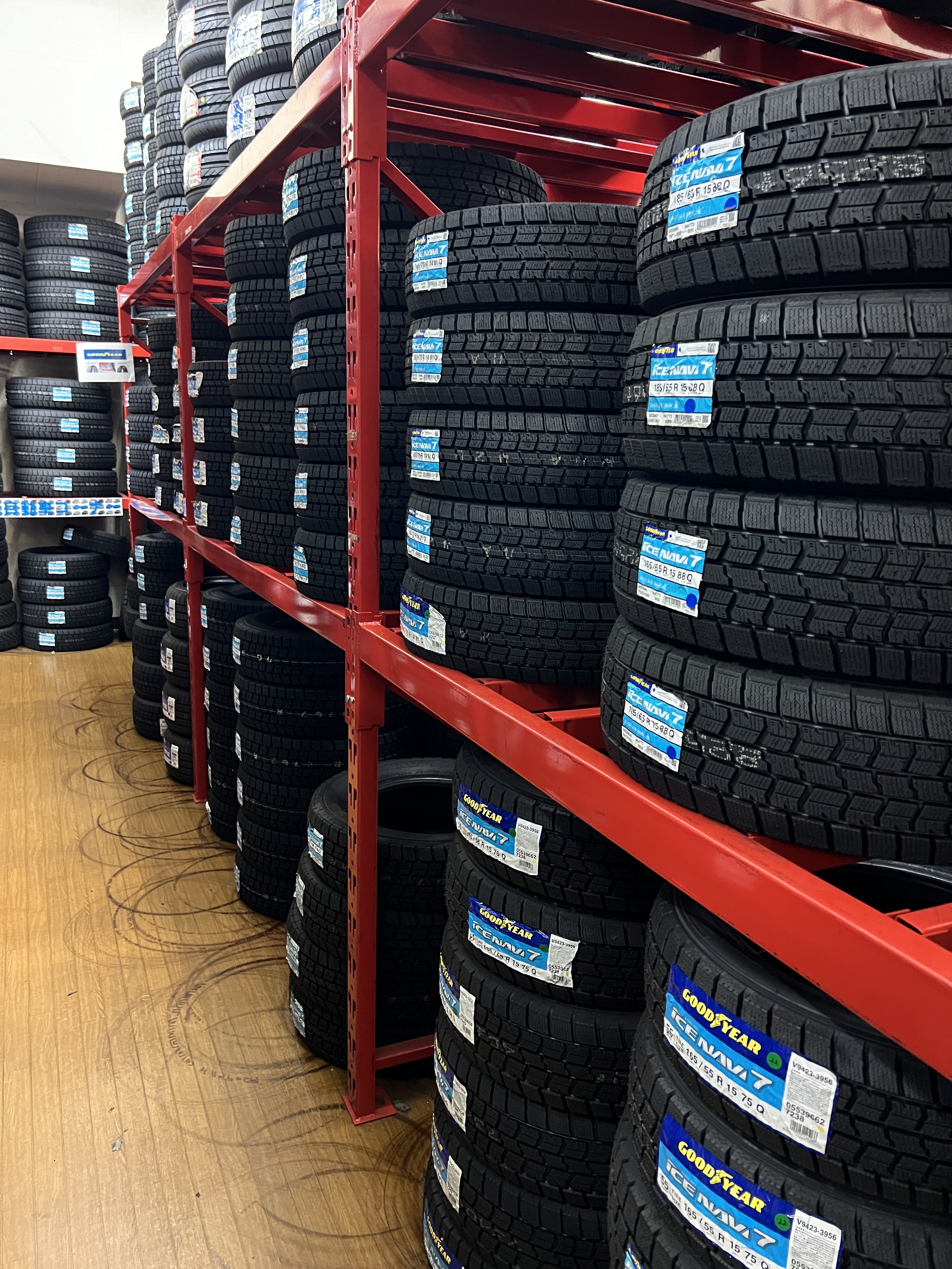 当店は表も裏も、店内は殆どスタッドレスタイヤに入れ替えました