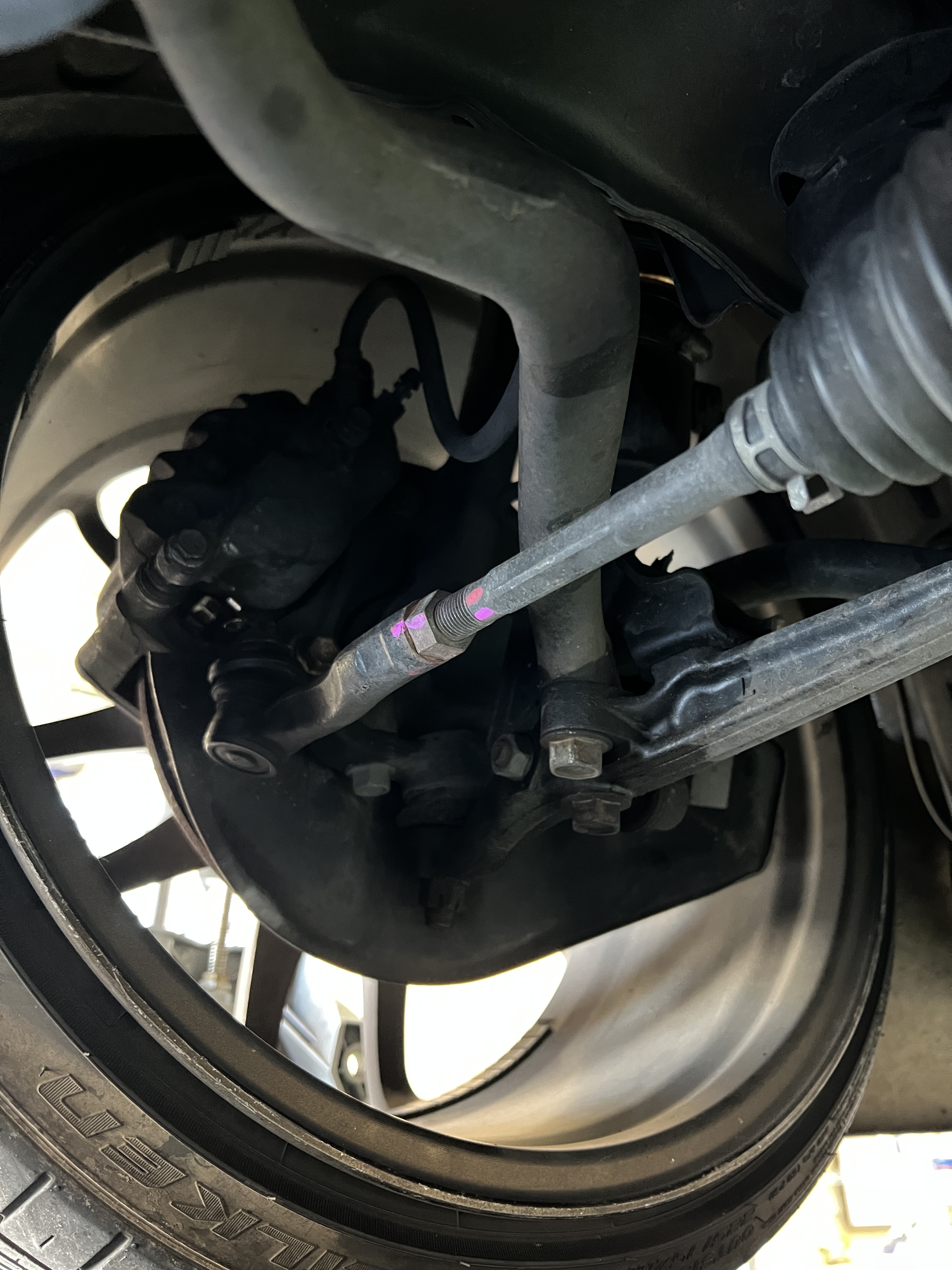 この型式の調整個所はリヤのキャンバー調整とトー調整、フロントのトー調整の合計6か所の調整となります