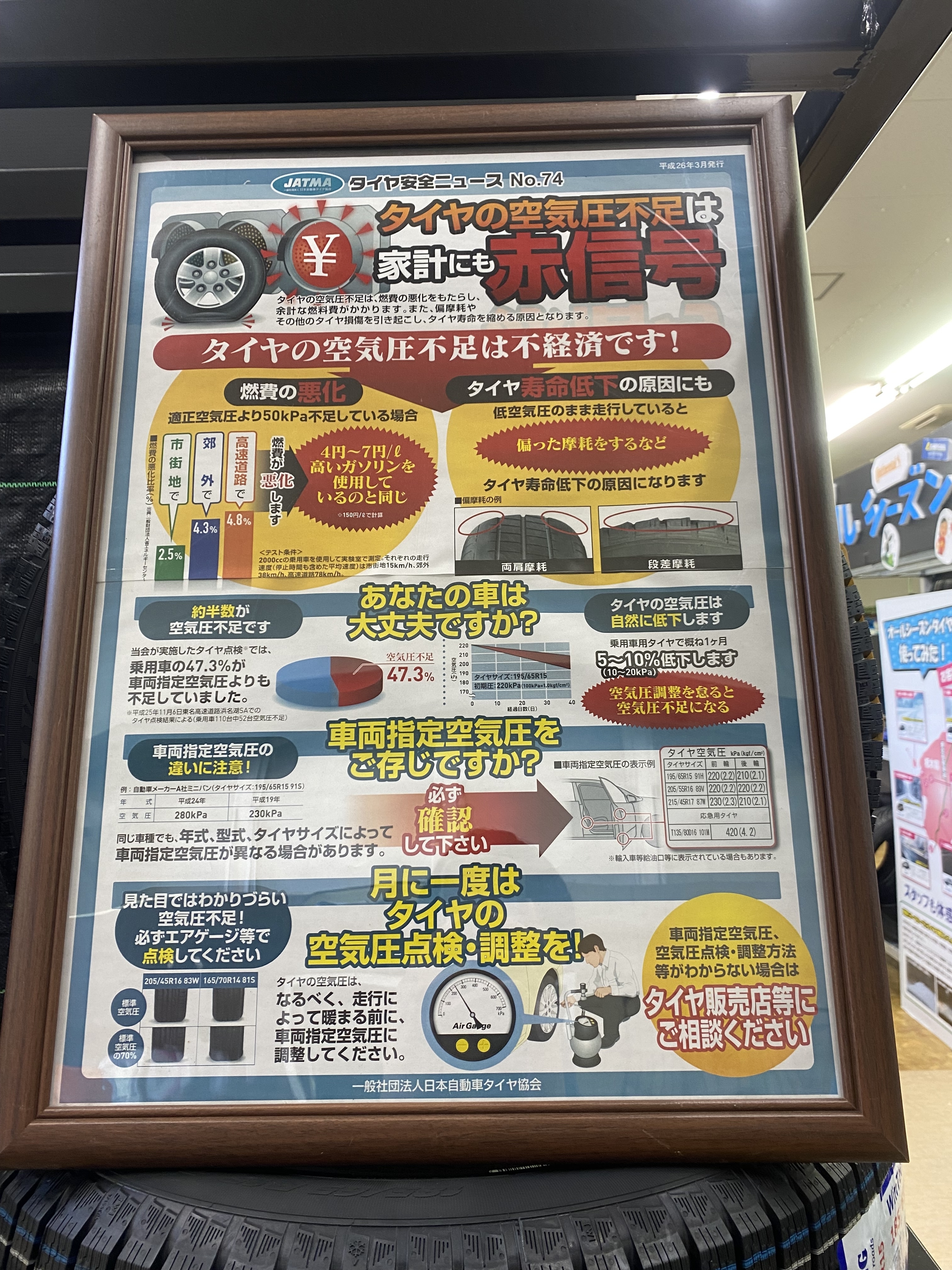当店でも無料にてタイヤ空気圧点検を実施しておりますのでお気軽にご来店下さい!