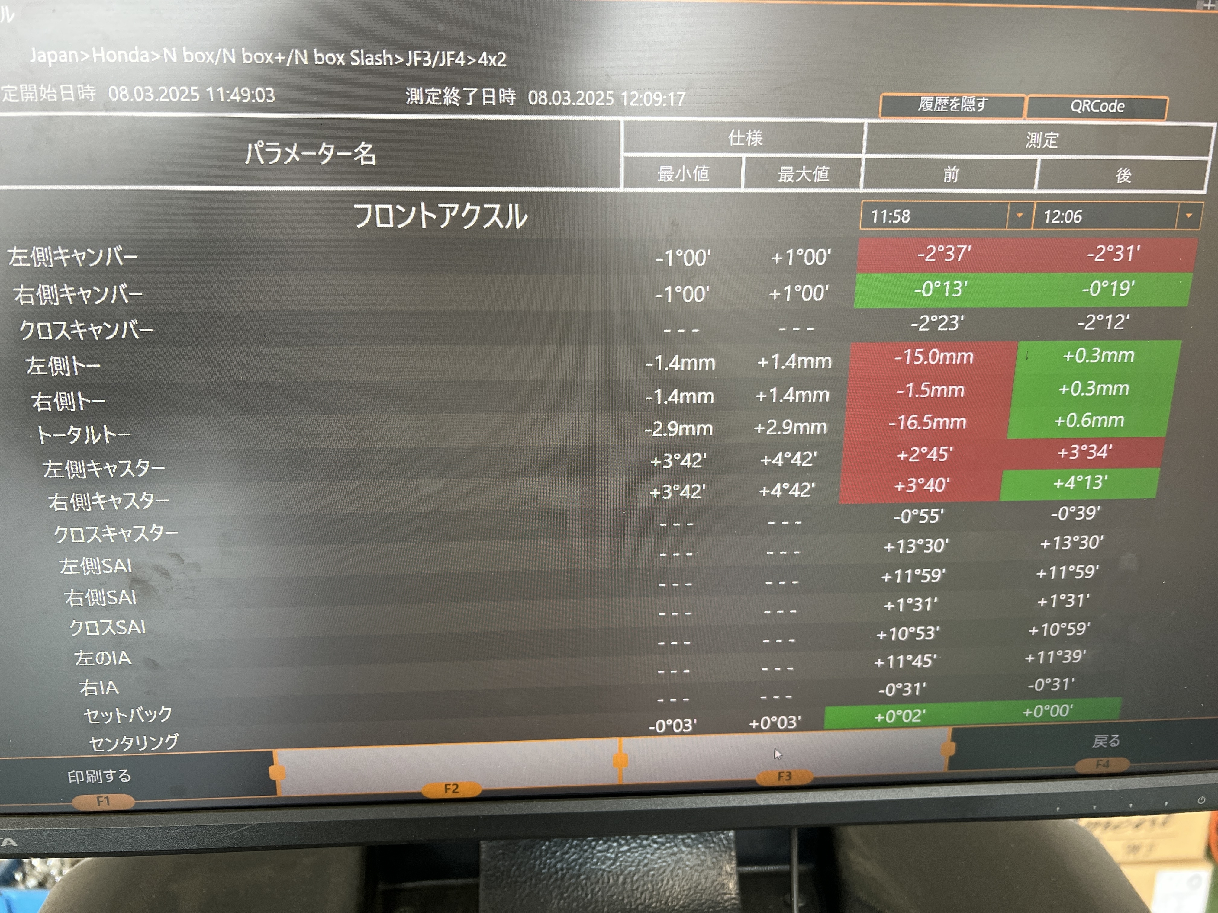 先程ホンダ、Nボックスのアライメント調整させて頂きました!