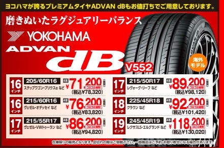 ヨコハマのプレミアムタイヤ V552がやすい!